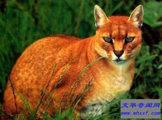 金猫是一种猫科动物,体长为1.1-1.6米,尾长0.4-0.56米,体重达到12-30公斤。体毛颜色复杂多样,有金棕色、棕色、黑色、狐狸红色和灰色。这种猫生活比较独,常以夜晚出来捕食,如鸟类、幼兔、家鸡、麂以及麝等小型鹿类为食。由于近些年来数量急剧减少,目前已经列为《世界自然保护联盟》濒危动物。