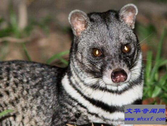 小灵猫属于灵猫科、小灵猫属,是我国二级重点保护动物;身长为48-58厘米,尾长为33-41厘米,体重2-4公斤。小灵猫每天晚上10点出来活动,常以小动物或植物为食。当在遇到敌人时候,就会从肛门腺中排出一种黄色且奇臭分泌物,来保护自己不受伤害。