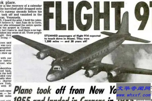 1990年 9月9日,南美洲委内瑞拉卡拉加机场控制塔上出现了一架早该被淘汰的客机,而机场的雷达没有这架飞机的存在,飞机降落后被机场的警卫包围,等驾驶员和乘客全部走下后非常纳闷,说自己是1955年7月2日起飞的,经过查证这一航班确实是在1955年7月2日从纽约起飞,目的地为佛罗里达。