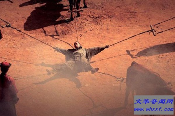 车裂就是我们口中常说的五马分尸,即把受刑人的头和四肢套上绳子,然后绑在五匹马上,让它们从五个不同的方向疾驰,此时人的肢体就会被扯得四分五裂,有人说历史上著名的商鞅就是因为车裂而死。